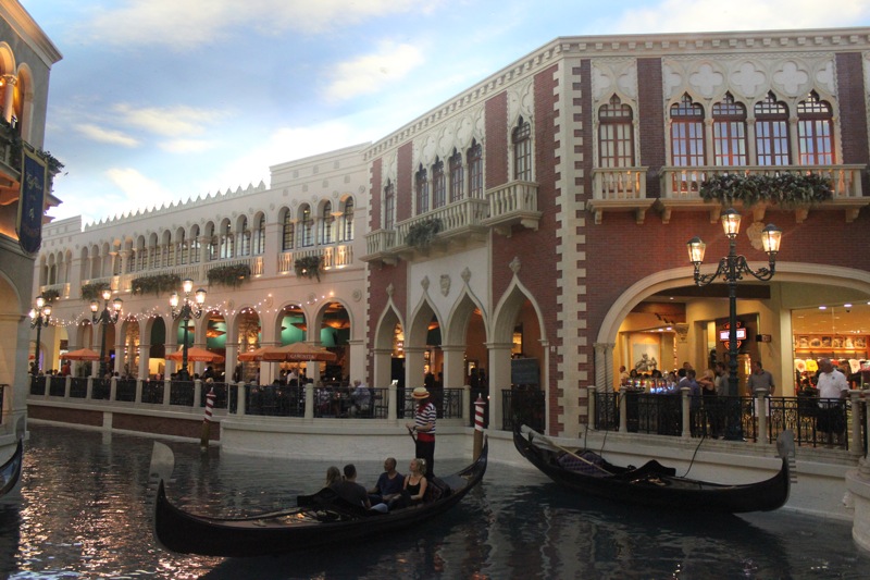 Na het eten komen we terecht in The Venetian, waar de Venetiaanse kanalen zijn nagebootst binnen in het gebouw. Het plafond is als hemel geschilderd en de gondelvaarders zingen liedjes voor de verliefde koppeltjes.