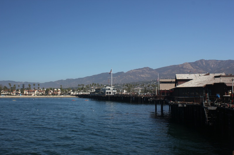 De eerste stop is Santa Barbara, een kuststadje waar de Spaanse invloeden nog duidelijk te merken zijn in de architectuur van de gebouwen. We kuieren er op de Wharf met z’n gezellige restaurantjes en bespeuren een paar pelikanen in de lucht .