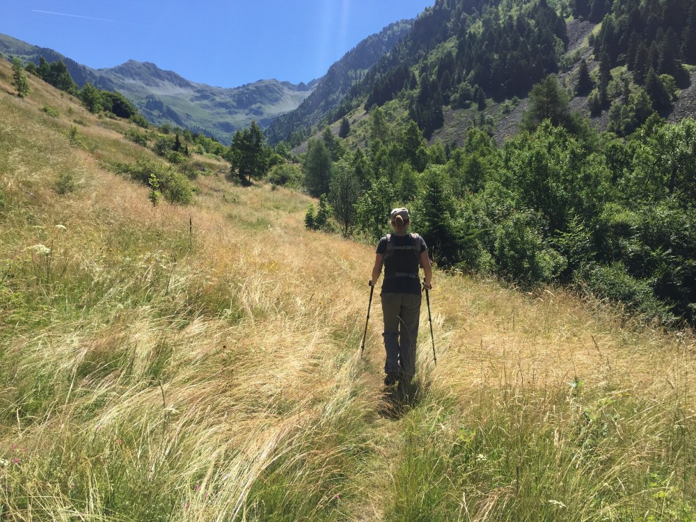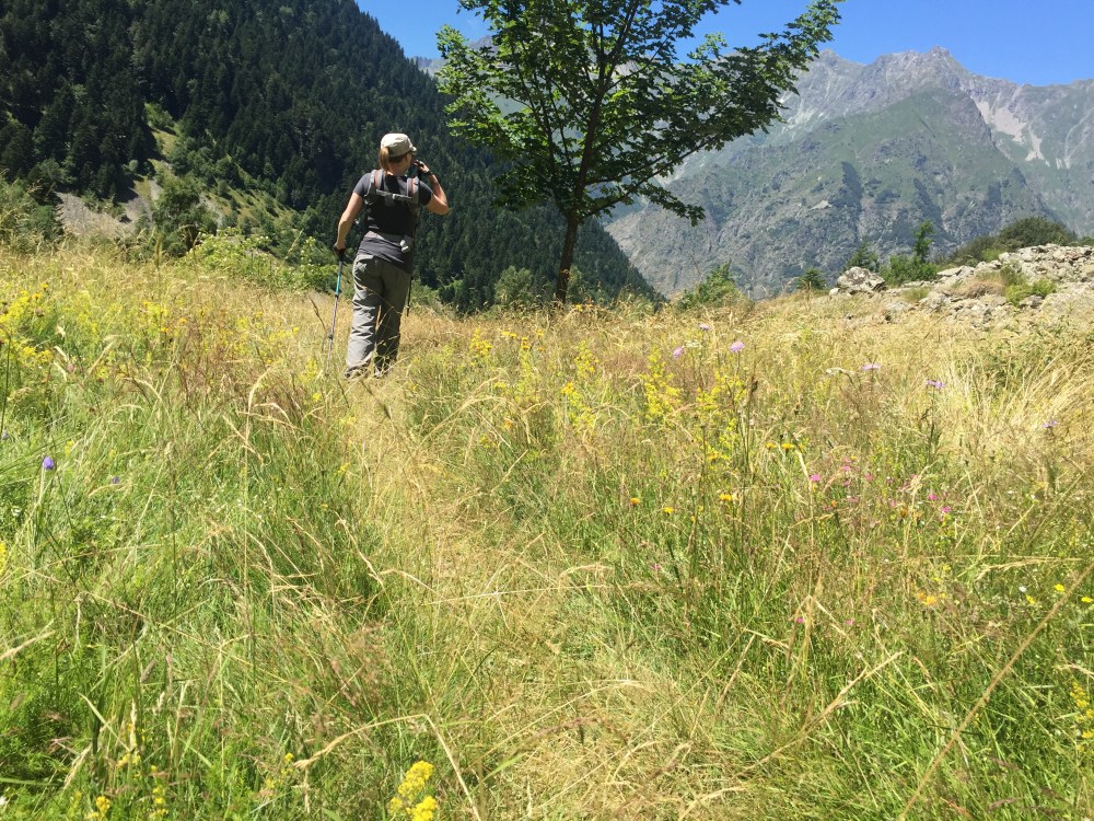 De wandeling ‘Source des Doux’ brengt ons naar een prachtige plek tussen de weidebloemen waar we ons even alleen wanen in de bergen.