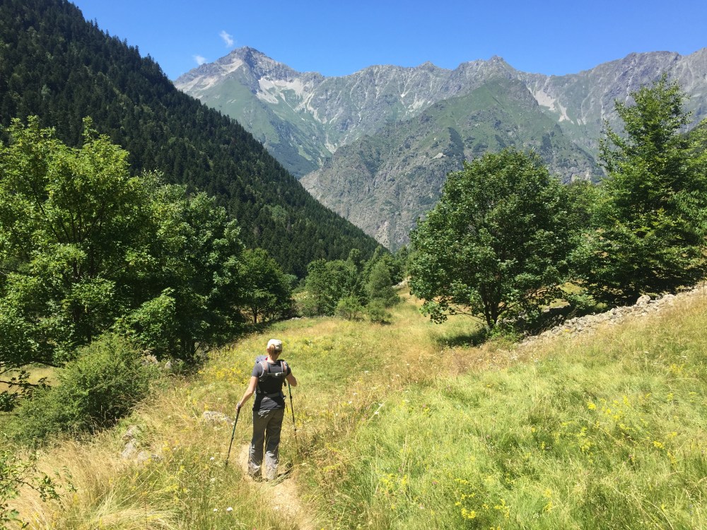 We vertrekken vanuit Ubac en volgen een aangenaam pad in het bos vlakbij een kabbelende bergstroom. Het is er aangenaam vertoeven, koel en nog wat vochtig. Daardoor is het wel opletten geblazen waar we onze voeten zetten, we willen uiteraard geen misstap begaan nu we baby Alice op onze buik meedragen.