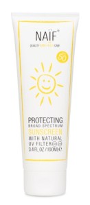 Ook al is er wellicht niet veel huid dat niet bedekt is met een muts, sjaal, wanten,… toch is het heel belangrijk om de (zichtbare) huid van je baby goed te beschermen tegen de zon. Een aangepaste zonnecrème met hoge factor is dus onmisbaar. Wij zijn heel tevreden van de zonnecrème van Naïf, die geen schadelijke producten bevat en werkt met natuurlijke filters.