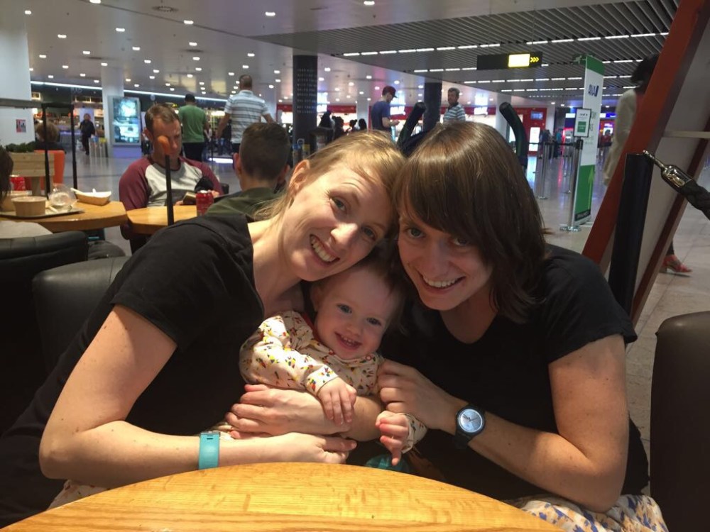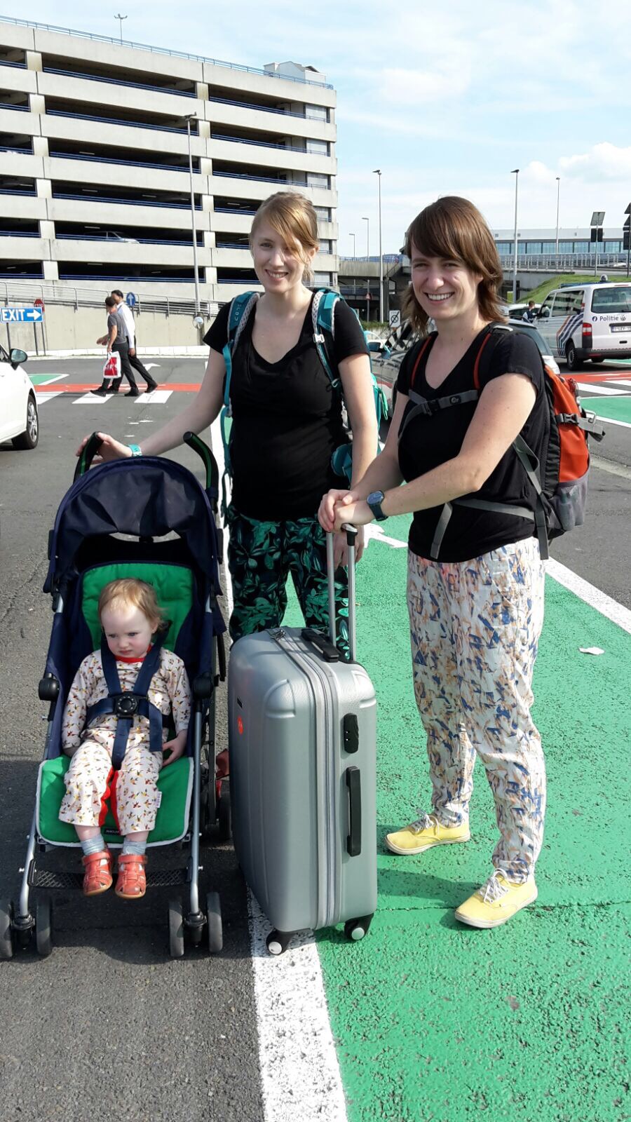 Mijn schoonouders zijn zo enthousiast om ons af te zetten aan het vliegveld in Zaventem. Na een afscheid aan de drop off zone begeven we ons naar de vertrekhal. We checken heel vlot in, de buggy mogen we bijhouden tot aan de ingang van het vliegtuig.