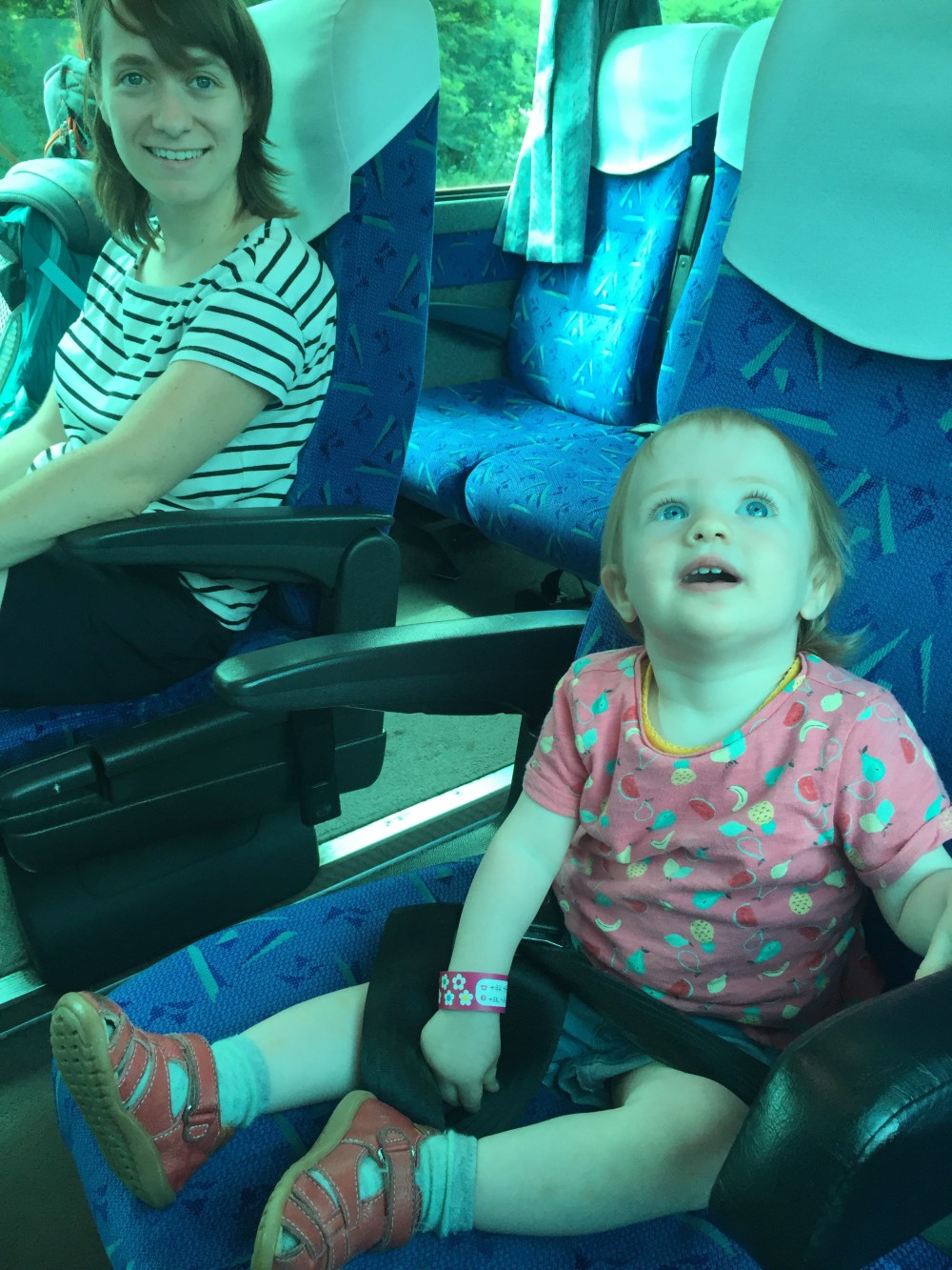 Na een tijdje spelen is Alice alweer moe, maar ze kan de slaap niet goed vatten. We halen de draagzak boven en wandelen op en af door de wagons tot ze slaapt. Ze wordt pas wakker wanneer we in Kyoto toekomen.