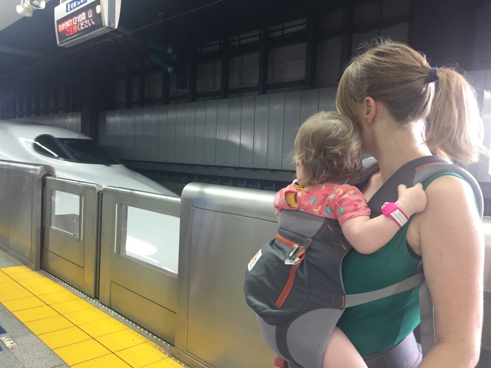 Alice is ondertussen alweer moe en valt al gauw aan de borst in slaap. De treinrit duurt een klein uurtje en voor we het weten zijn we al in Shinagawa waar we moeten overstappen op de Shinkansen richting Kyoto.