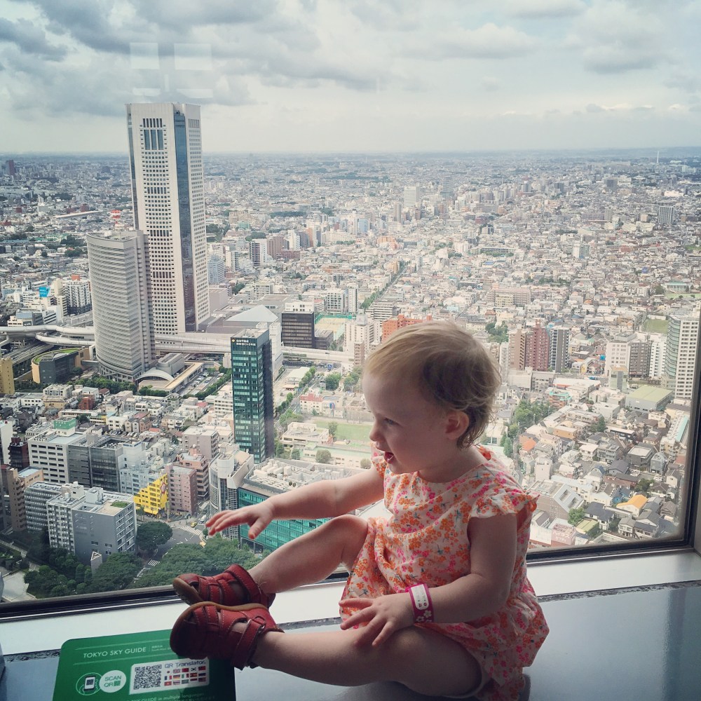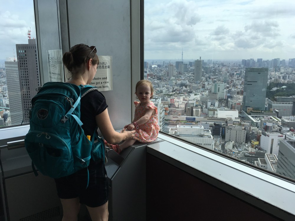 Eenmaal aangekomen bij de wolkenkrabber nemen we de lift tot de 45e verdieping. Het is er nog rustig maar we zijn er dan ook een kwartier na opening. Het uitzicht is werkelijk fenomenaal, zo uit de hoogte zie je pas hoe groot en ver uitgestrekt Tokyo is.