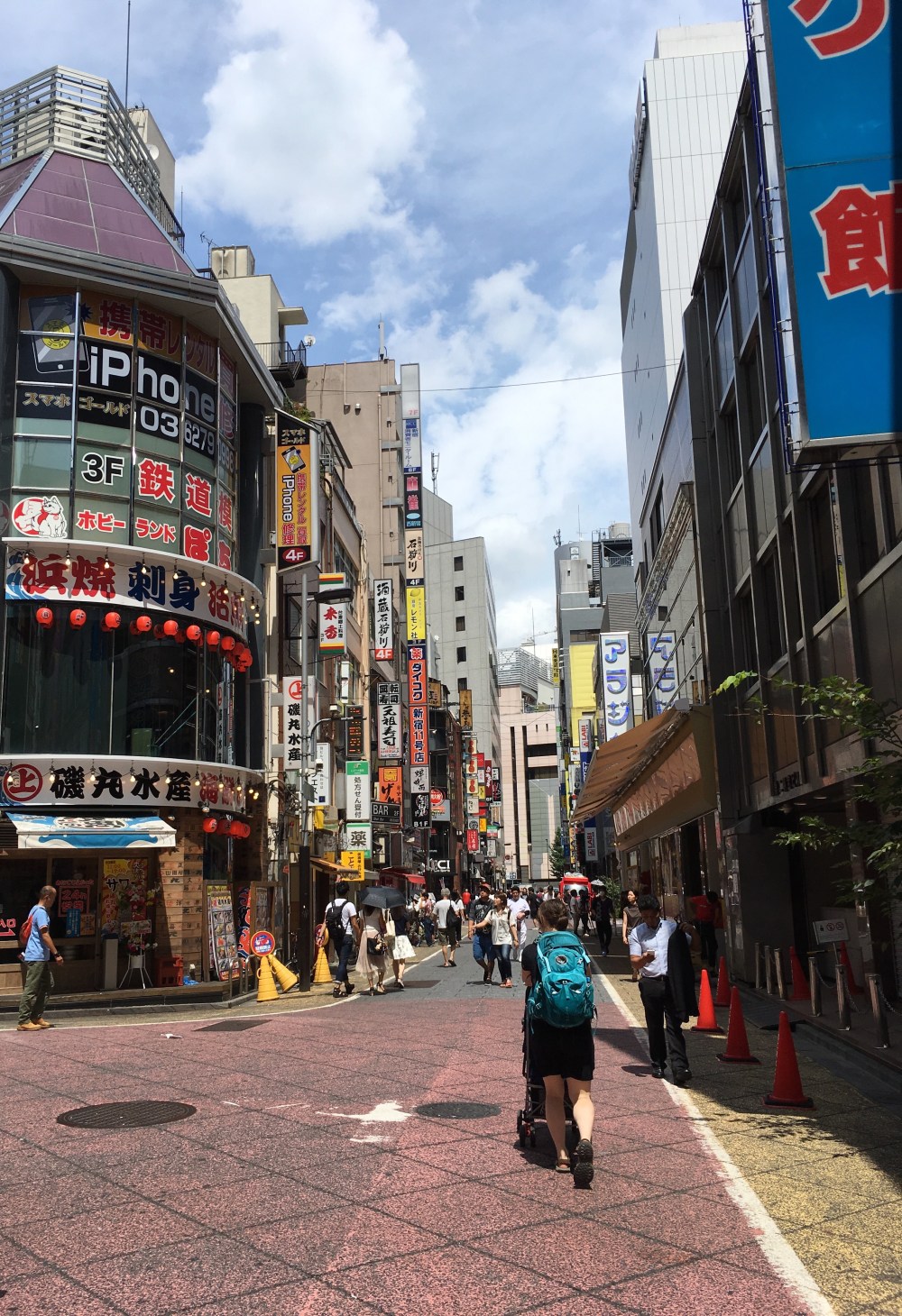 Na al dat speelpret voor Alice keren we terug in de richting van Shinjuku station, op zoek naar een plekje om te middageten.
