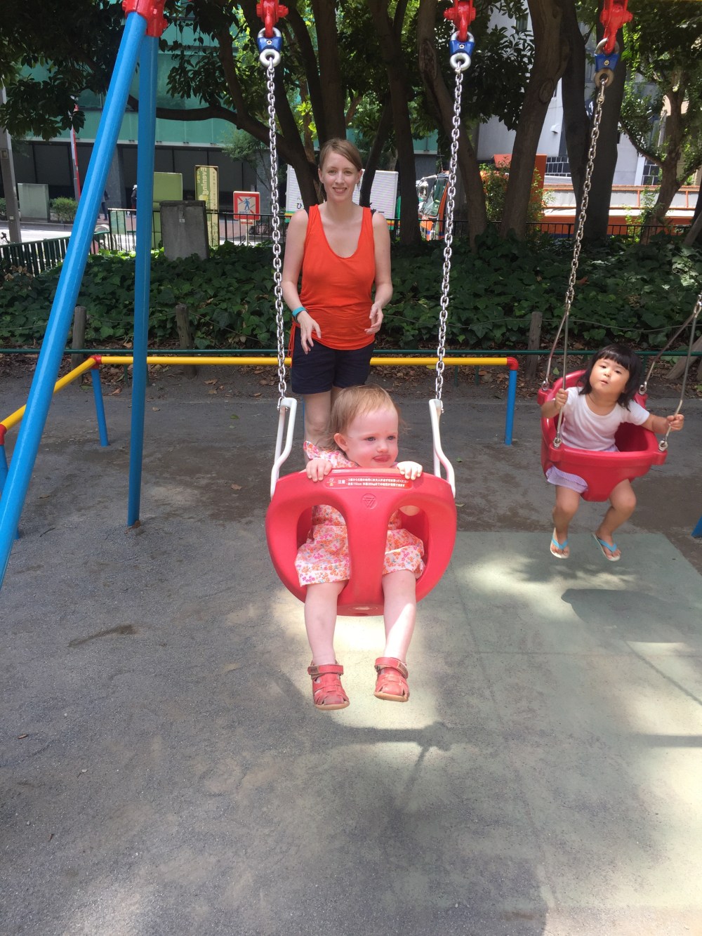 Hierna laten we Alice nog wat spelen in de naastgelegen speeltuin. Deze speeltuin is goed aangepast voor jonge kinderen maar er zijn ook stevige glijbanen voor de oudere kindjes. Er is zelf een heuse shikansen-wip!
