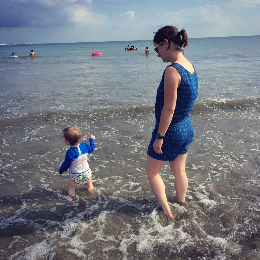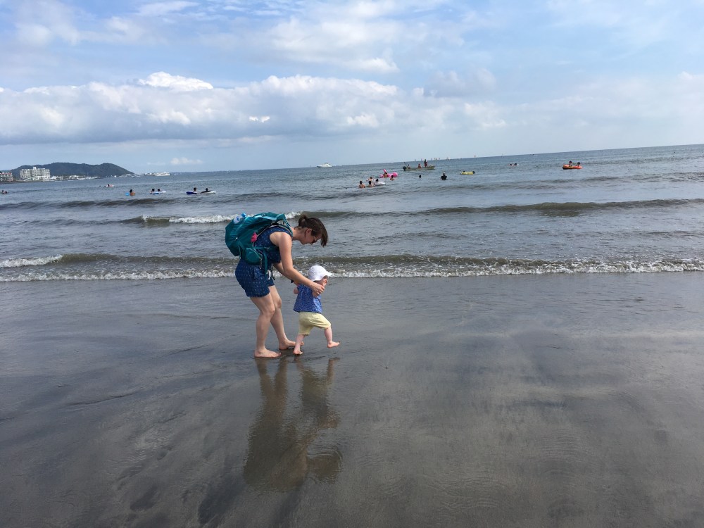 Na het tempelbezoek stappen we tot aan het strand van Yuigahama. Er heerst hier nogal een surfers sfeertje, niet iets dat we meteen associëren met Japanners. Ook de geur van yakitori en bbq is een geur die we niet gewoon zijn op het strand. Alice vindt het heel erg leuk om de golven tegemoet te gaan, dus blijven we een poosje spelen in het water, een welgekomen afkoeling nu de zon op onze huid brandt.