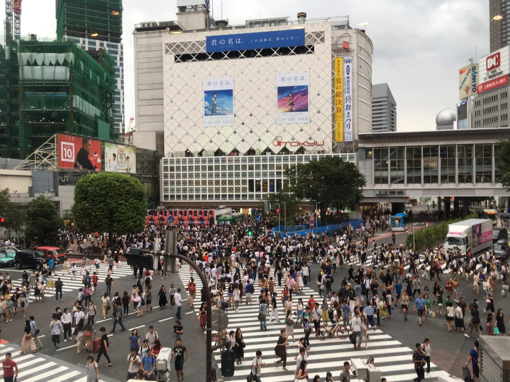 We stappen naar huis via Shibuya crossing, deze keer op een drukker tijdstip, en steken mee over met de mensenmassa. Aan de overkant gaan we even piepen in de Starbucks op het eerste verdiep om een beter zicht te hebben op het kruispunt.
