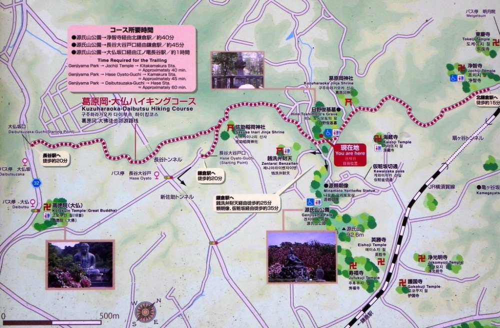 Eenmaal terug in de bewoonde wereld is ook het volk terug aanwezig. De meeste toeristen in Kamakura bezoeken de belangrijkste tempels maar blijven weg van de hiking trails.
