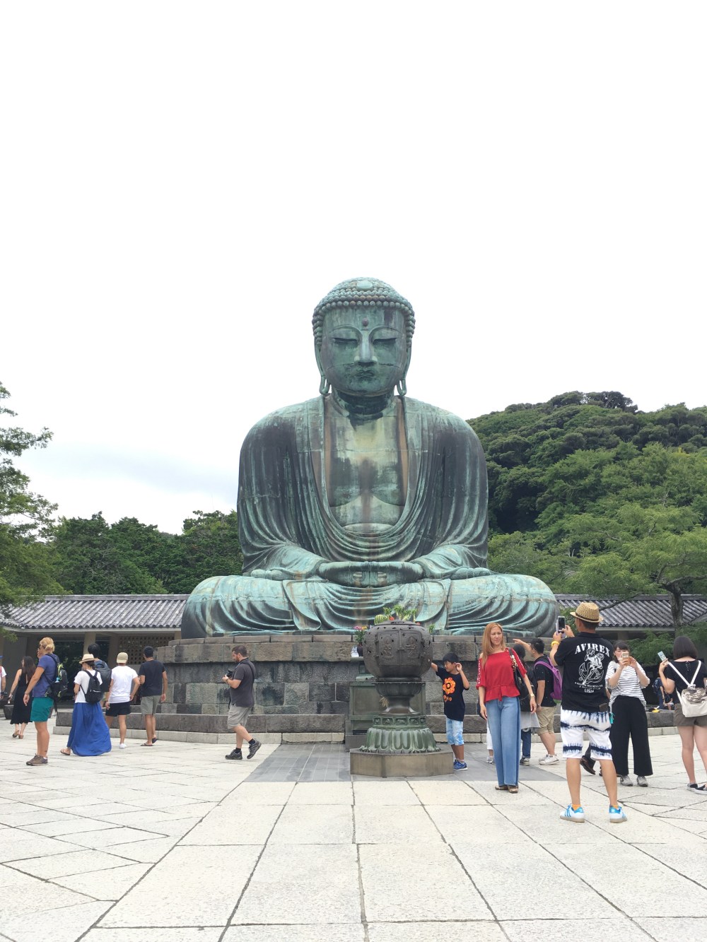 We bezoeken de Kotoku-in tempel, met het grote Buddhabeeld en laten Alice er wat rondlopen en klauteren.