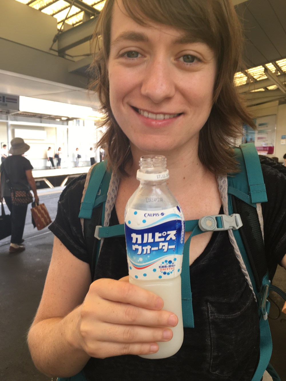 Uiteindelijk vinden we gewoon de ticketautomaat en kopen we zelf twee ticketjes naar Takaosanguchi. Om daar te geraken moeten we na enkele haltes overstappen maar dat lukt zonder al te veel problemen. Tijdens de overstaptijd probeert Ulrike opnieuw een vreemd drankje uit de drankautomaat. Na wat opzoekwerk blijkt het te bestaan uit water, melkpoeder en gefermenteerd melkzuur. Het is drinkbaar maar niet meteen iets dat we opnieuw zouden kopen.