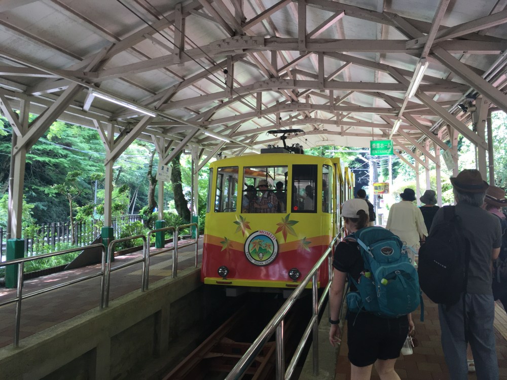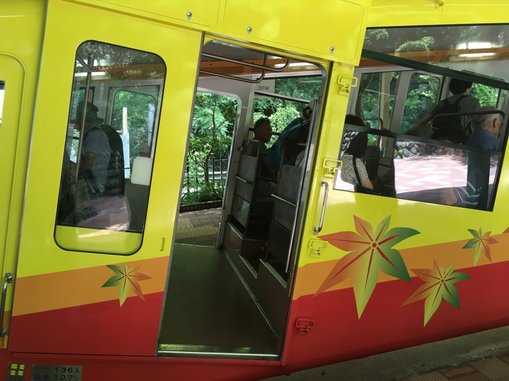 baby in de buik, vinden we wel dat we mogen “valsspelen” met de kabelbaan. Trouwens op zich wel een interressant ritje, want met een hellingsgraad van 31 graden is dit blijkbaar de steilste kabelbaan van Japan.
