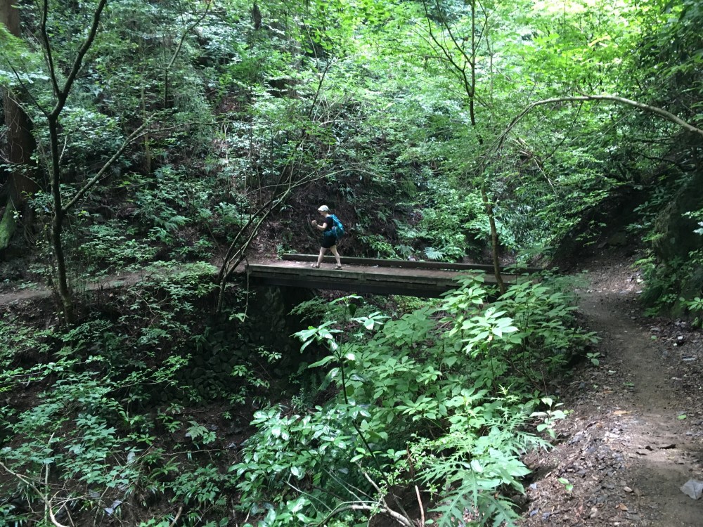 Na aankomst halverwege op de Takao berg, stappen we via het pad nr. 4 tot aan de top. Er zijn verschillende wegen tot boven, met elk een eigen nummer: route 1 is de hoofdweg, breed en helemaal geplaveid en het drukste bewandeld. Route nr. 4, diegene die wij kozen, is een smal wandelpadje door het bos en is heel erg rustig en met veel schaduw. Alice valt al snel weer in slaap op het gewieg van onze stappen. Het is een kleine klim tot boven, op zich niet ongelofelijk zwaar.