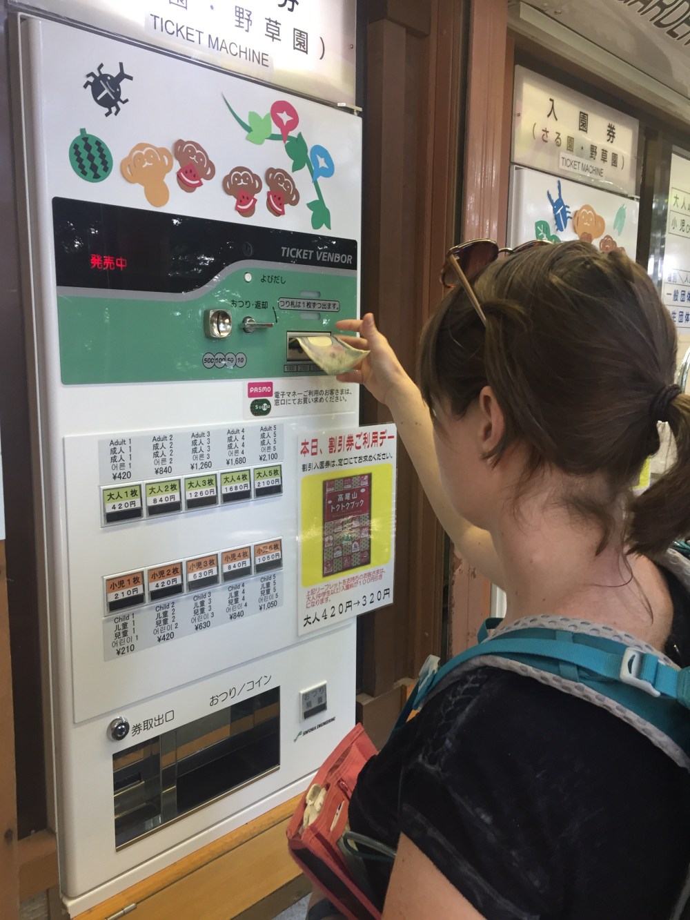 Wanneer we dan de juiste plek gevonden hebben, willen we ticketjes kopen aan de balie maar de dame spreekt geen woord Engels en zelfs met mijn basis-Japans geraken we niet verder. We hebben al gemerkt dat als je hier info vraagt aan Japanners en ze kennen het antwoord niet, dat ze dan alles gaan doen om een antwoord te kunnen geven: meestal noteren ze je vraag op een papiertje en beginnen ze te bellen, halen ze een collega erbij of lopen ze uit je zicht en komen ze na enkele minuten terug met een antwoord waar je vaak niets mee bent. Vreselijk irritant als je een trein wil halen…