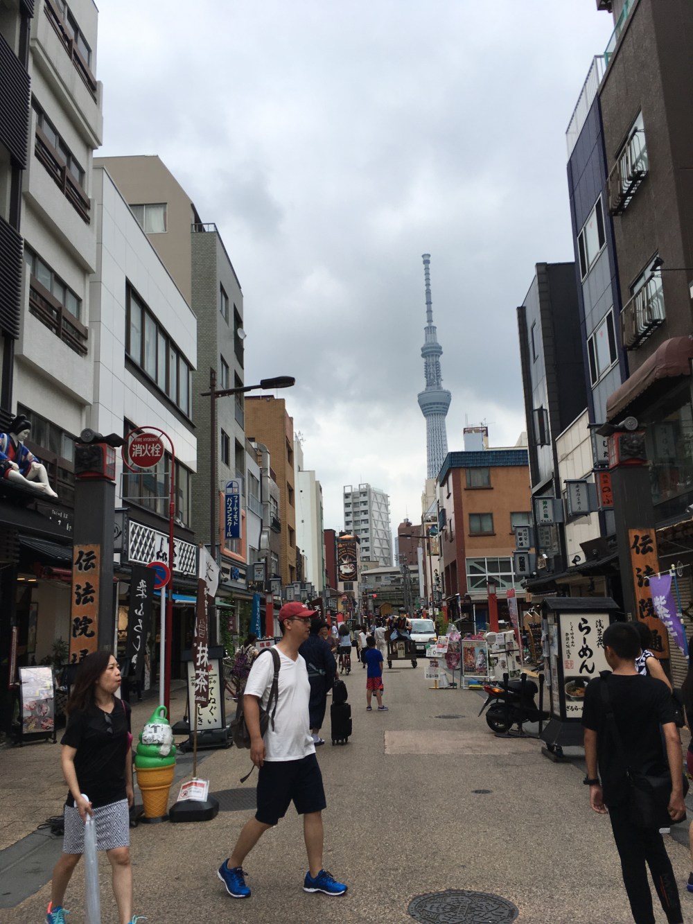 Van hieruit kunnen we goed de Tokyo skytree zien, een immens hoge toren die boven alle gebouwen uitkomt.