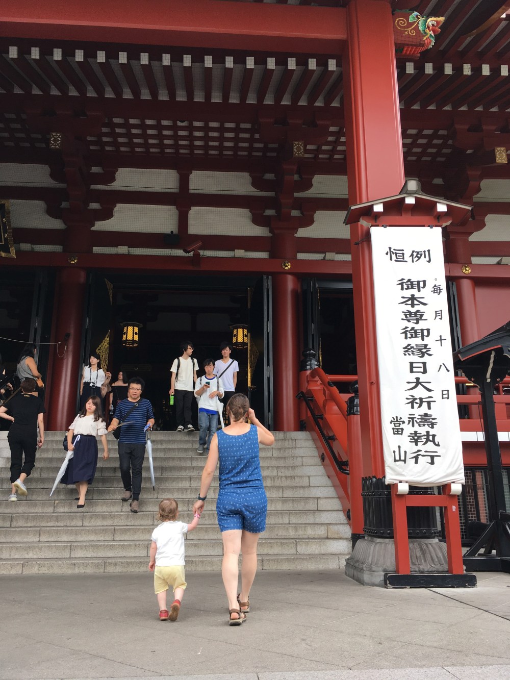 Onze laatste vakantiedag spenderen we in Tokyo zelf. We starten de dag met ochtendgymnastiek op Japanse kindertv (met dansende en zingende rijstballen, je kan het zo gek niet bedenken) en nemen na het ontbijt de Tokyo metro naar Asakusa.