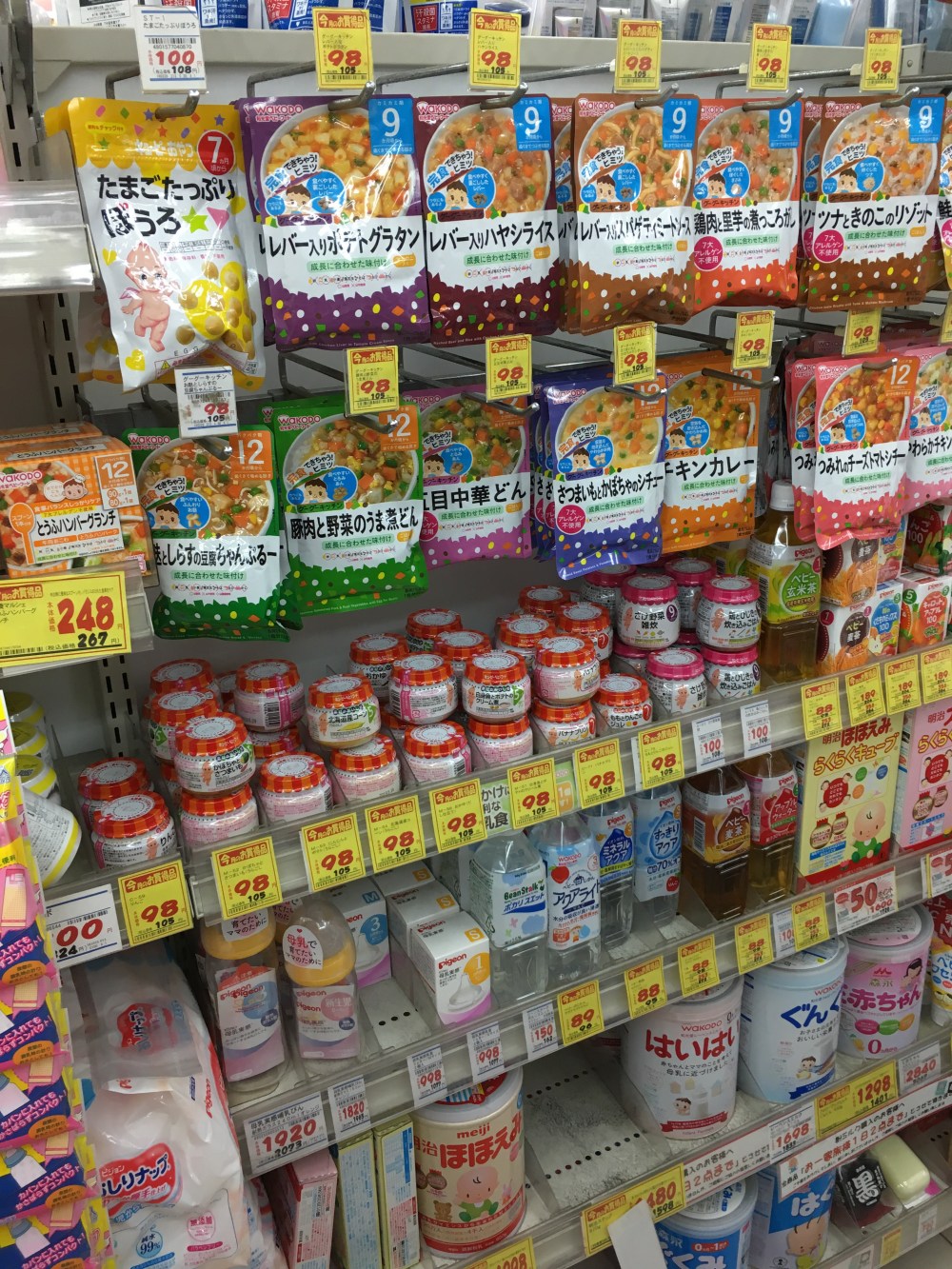 We kunnen het echter niet te lang maken want Alice is echt toe aan een middagdutje en zet het kot zowat op stelten. Met schaamrood op de wangen verlaten we het restaurant en wandelen we in de omgeving tot ze in slaap is. Ondertussen stappen we elke drugstore en convenient store binnen die we passeren, op zoek naar een klein pakje luiers om morgen nog rond te komen, maar tevergeefs: ofwel hebben ze geen luiers, ofwel zijn het gigantische pakken. De baby-rayons zijn ook altijd heel kleurrijk al ziet het baby-eten er ons niet zo smakelijk uit.