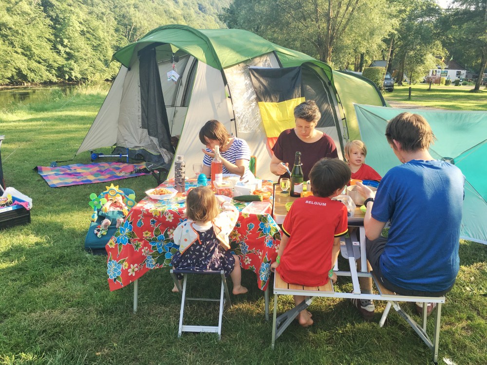 Het was al geleden van in de zomer 2016 dat we nog eens gingen kamperen, tijd dus om die reuze-tent van op zolder te halen en er met onze vrienden even tussenuit te gaan. We boekten twee nachtjes op een camping in de buurt van Bouillon, Camping l’Ile de Faigneul : een rustige camping gelegen op een eiland op de Semois en dus volledig omringd door water. Ideaal voor de kindjes!