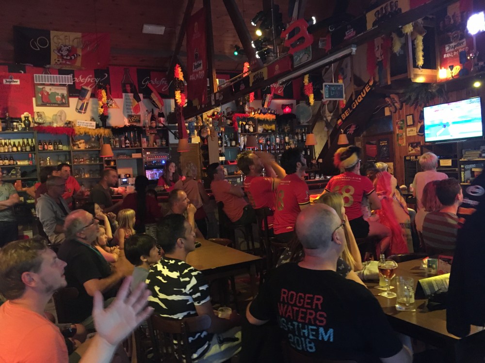 Tegen 20 uur gaan we naar de bar van de camping, want de Belgen spelen de kwartfinale tegen Brazilië op het WK in Rusland. Alice raast ondertussen nog wat uit op het speeltuintje bij de bar en Jeanne vindt het allemaal opperbest.