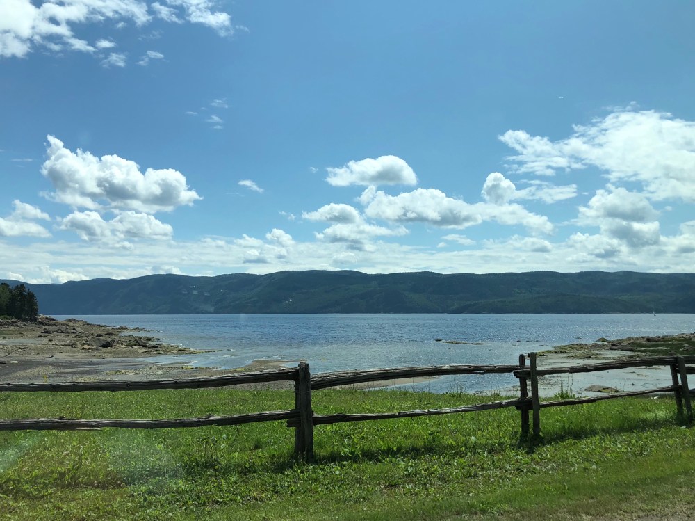 Nadat we al onze spullen verzameld hebben en de koffer volgeladen hebben, vertrekken we naar onze volgende bestemming: het nationaal park Fjord-du-Sagueney. De baan ernaartoe parallel aan de grote Sagueney rivier. We rijden voorbij de stad Sagueney en stoppen even aan een prachtig uitzichtspunt bij Saint-Fulgence. Hier staan meerdere campers en tentjes, en gelijk hebben ze! We nemen de tijd om er even te lunchen alvorens we verder rijden.