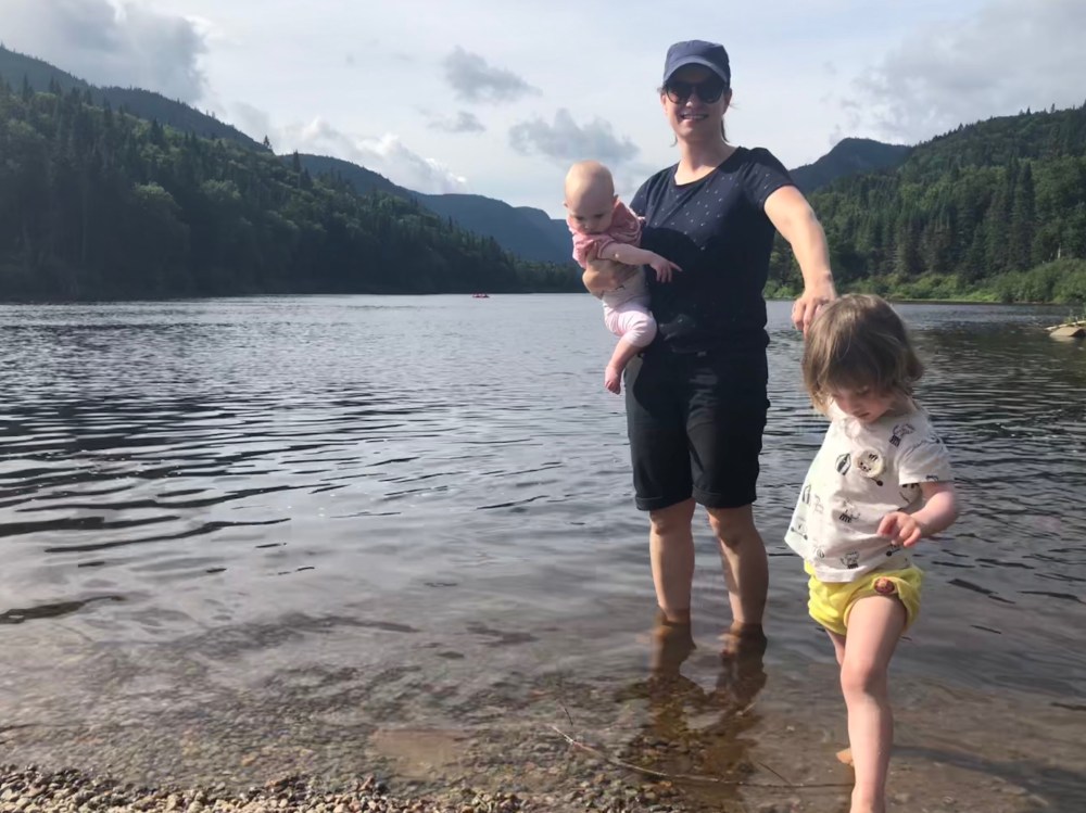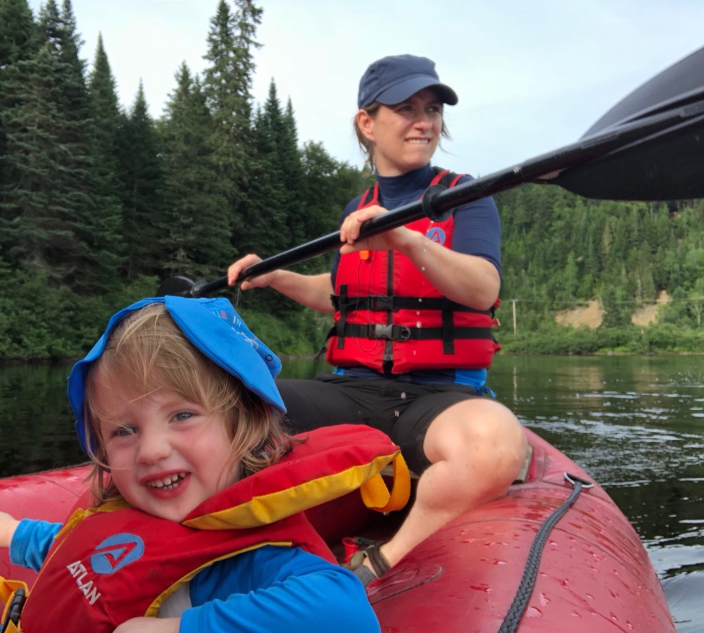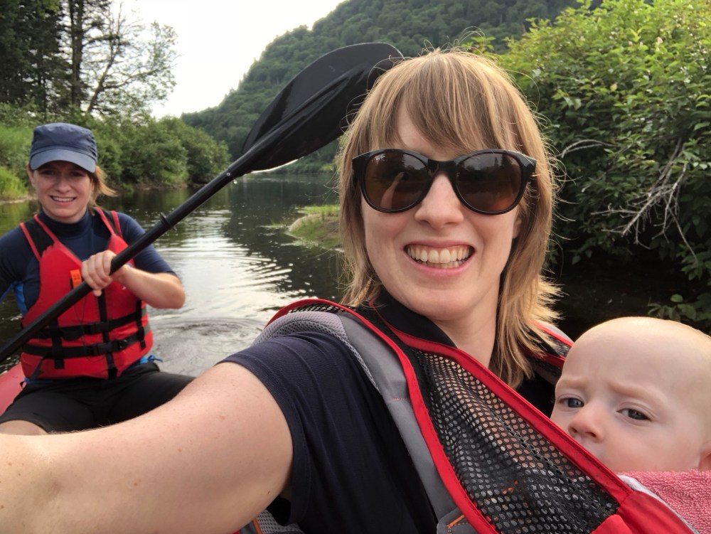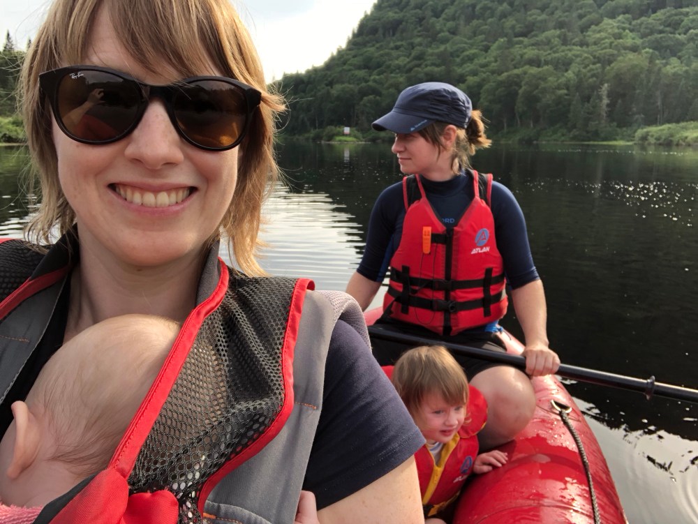 Eenmaal terug in de natuur huren we een opblaasbare kano (want die zijn stabieler dan een gewone kano) om ermee op het rustige deel van de rivier te varen. Het weer is helemaal opgeklaard, dus dit is het ideale moment hiervoor. Alice is helemaal opgewonden maar na een kwartiertje heeft ze het gehad en wil ze zwemmen. Zo gezegd, zo gedaan, en dus zwemmen we nog een tijdlang in het frisse water van de rivier.