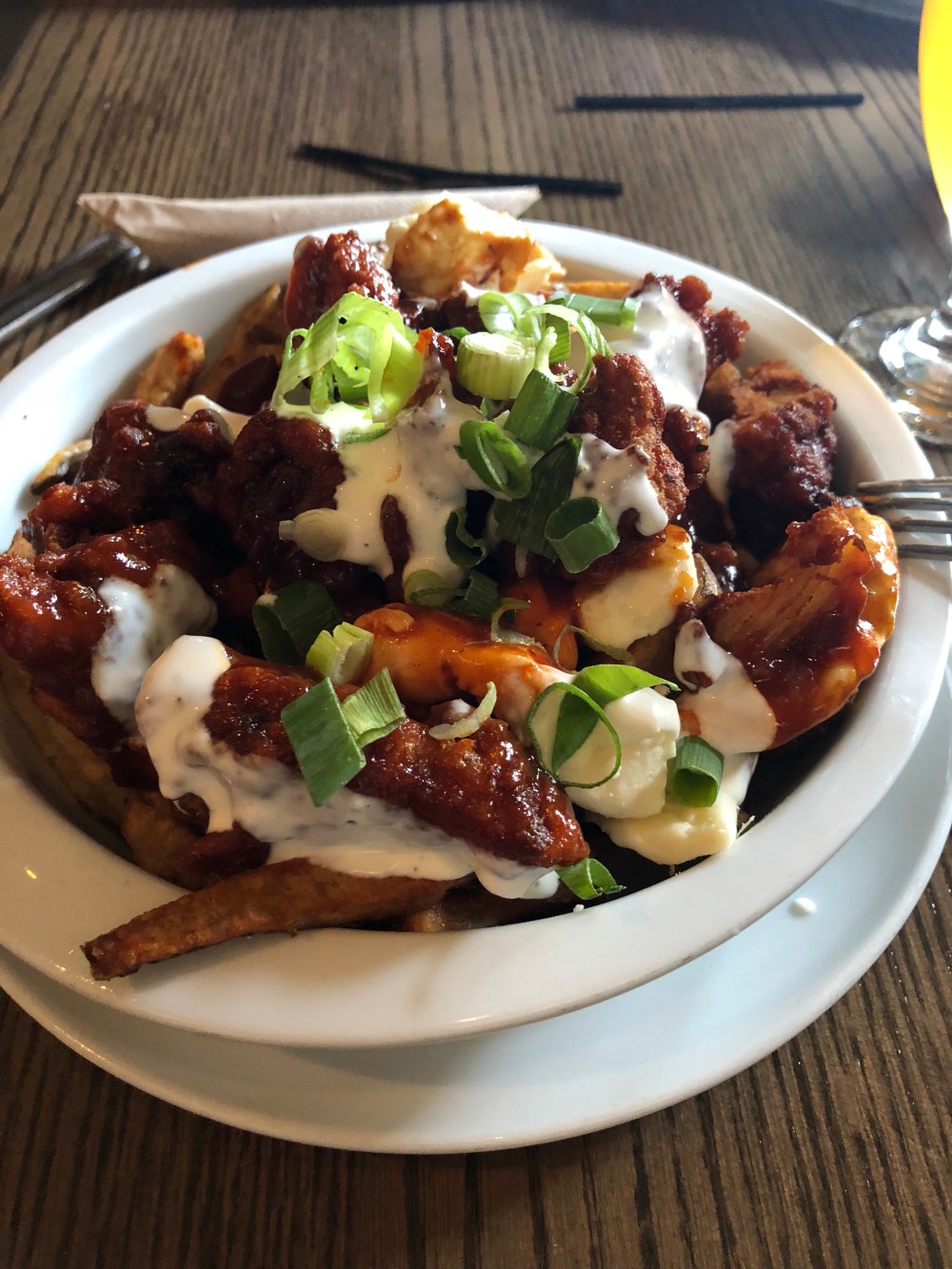 Een goede cappucino on the go kan ons echter wel bekoren en al gauw belanden we in een hippe burger-restaurant, Chez Victor, waar vooral locals te vinden zijn. Ulrike bestelt er een poutine poulet-buffalo en ik kies voor de everzwijnburger met portobello en oude kaas, beiden heel lekkere gerechten. Alice smult ondertussen van een “poulet-pané” en is nog altijd aan het eten wanneer onze borden al lang op zijn.