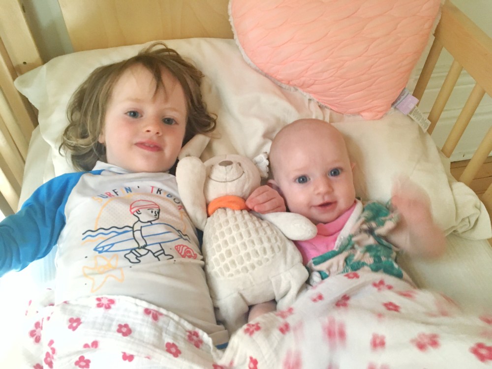 Na de lunch steken we de kindjes in bed (niet tesamen zoals op de foto uiteraard) en beginnen wij al wat spullen te organiseren in de valies voor de terugvlucht.