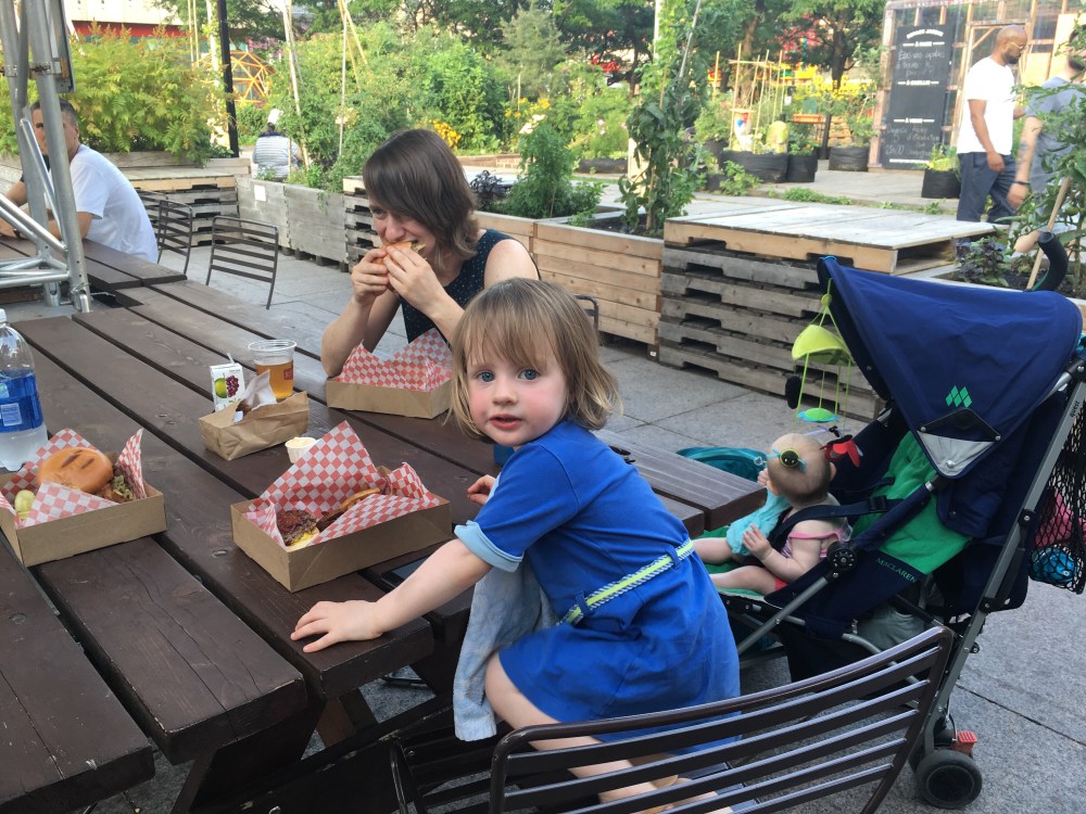 Na een warme, plakkerige nacht ontbijten we met z’n allen aan het keukeneiland. We hebben geen zin om ons te haasten en snel snel alle bezienswaardigheden van Montreal af te vinken. Vandaag willen we volledig op het ritme van de kindjes spenderen, en dat wil zeggen: een uitstapje naar de speeltuin in de voormiddag, het middagdutje thuis doen en in de namiddag op stap in Montreal. Zonder kinderen hadden we het wellicht niet kunnen laten om alles te willen zien en doen, maar het voelt wel ontspannend om de stad te bezoeken op ons dooi gemakske!