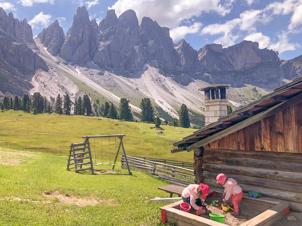 De Adolf Munkel Trail is wellicht één van de meest kindvriendelijke wandelingen van de Dolomieten: onderweg kom je meerdere hutten tegen, elk met een speeltuin en boerderijdieren. Het pad is niet moeilijk en je wandelt er aan de voet van de imposante Geisler (Odle) pieken.